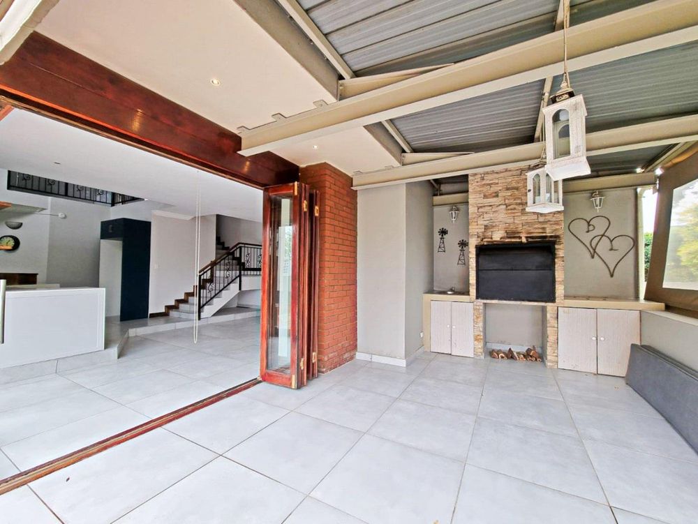 The patio has a built-in braai. Canvas blinds enclose the 2 open sides of the patio.