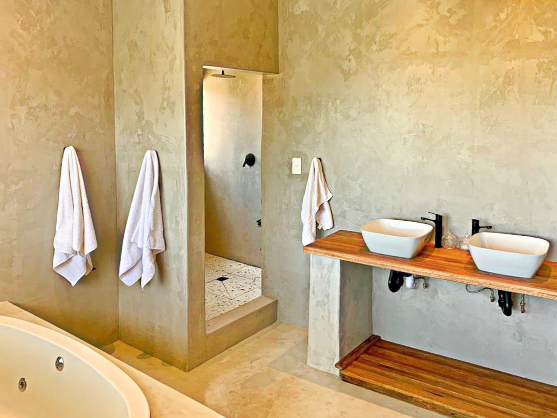 Beautiful en-suite bathroom with spa bath and separate toilet.