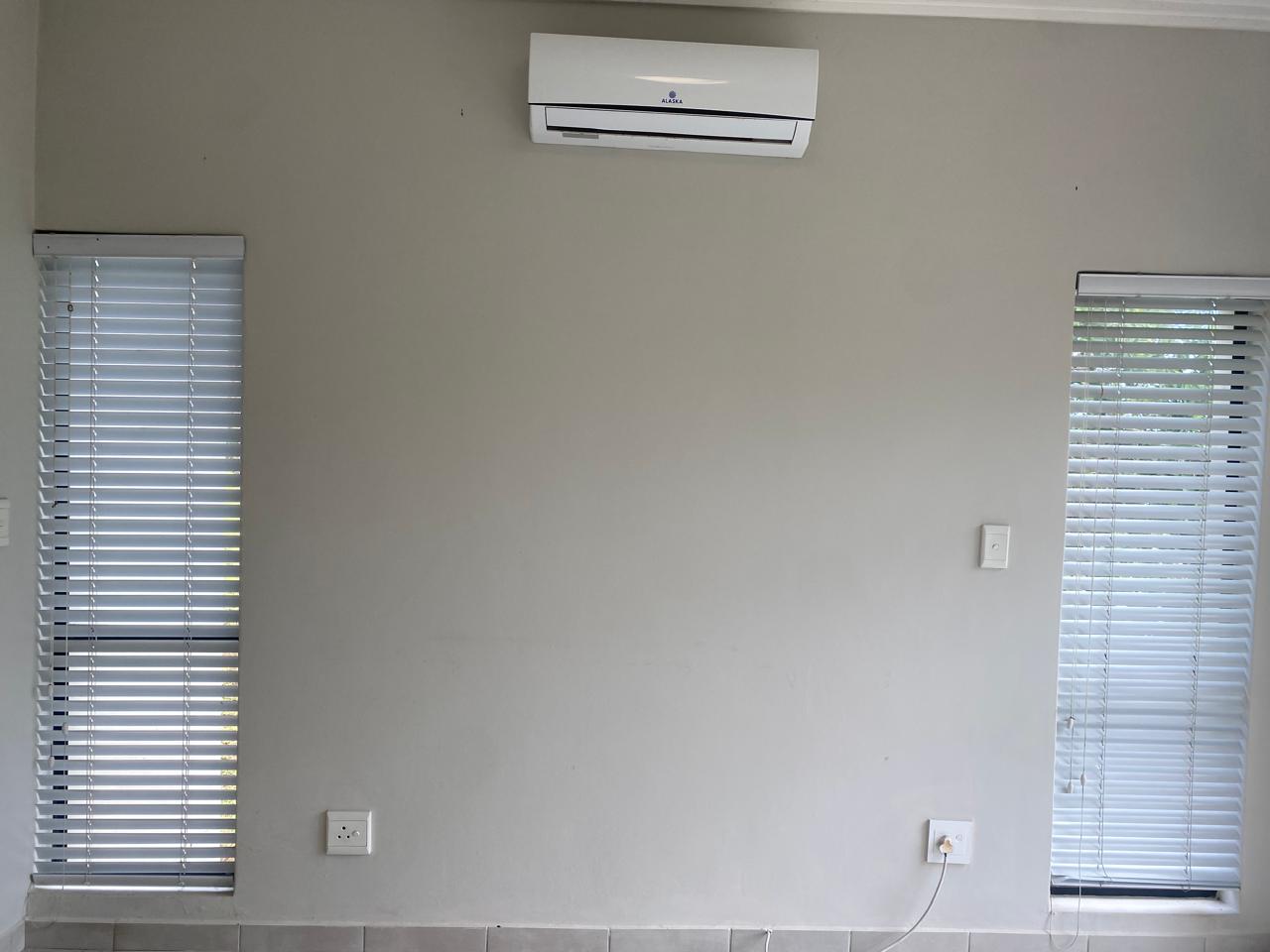 The main bedroom is a tranquil retreat, complete with an en-suite bathroom and air conditioning for ultimate comfort. The second bedroom also features air conditioning and blinds, providing privacy and convenience. A spacious second bathroom completes the layout, ensuring ample room for family or guests.