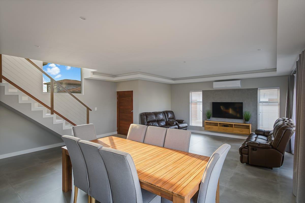 Welcome to this stylish home, where modern design meets comfort and functionality. As you step inside, you'll be greeted by a stunning double-volume space that creates an airy and inviting atmosphere. The open-plan layout seamlessly connects the kitchen and lounge area, making it ideal for both entertaining and everyday living.