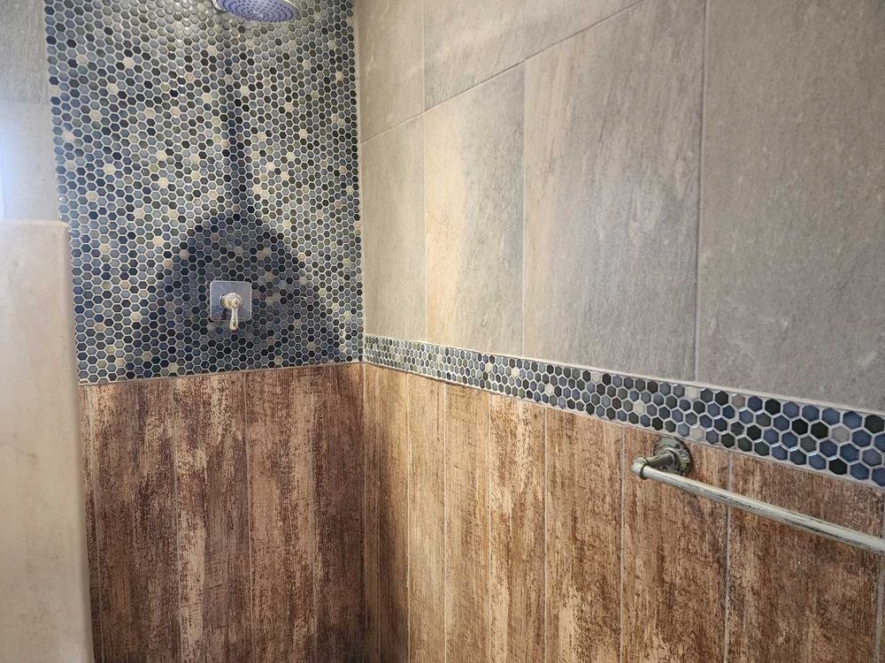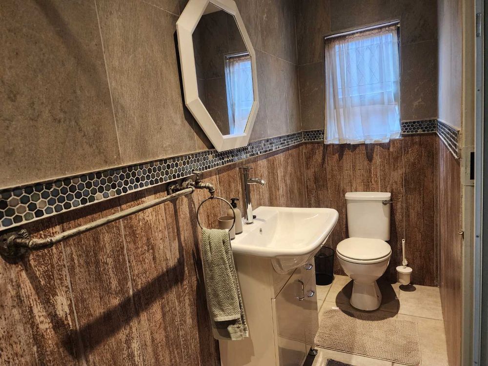 On the ground floor, a generously sized bedroom and guest bathroom with shower, basin, and toilet provide flexibility for permanent residents or visiting guests. Upstairs, three spacious bedrooms include a main bedroom with en-suite bathroom and a walk-in cupboard nook with built-in cupboards. A second upstairs bathroom serves the remaining bedrooms.
