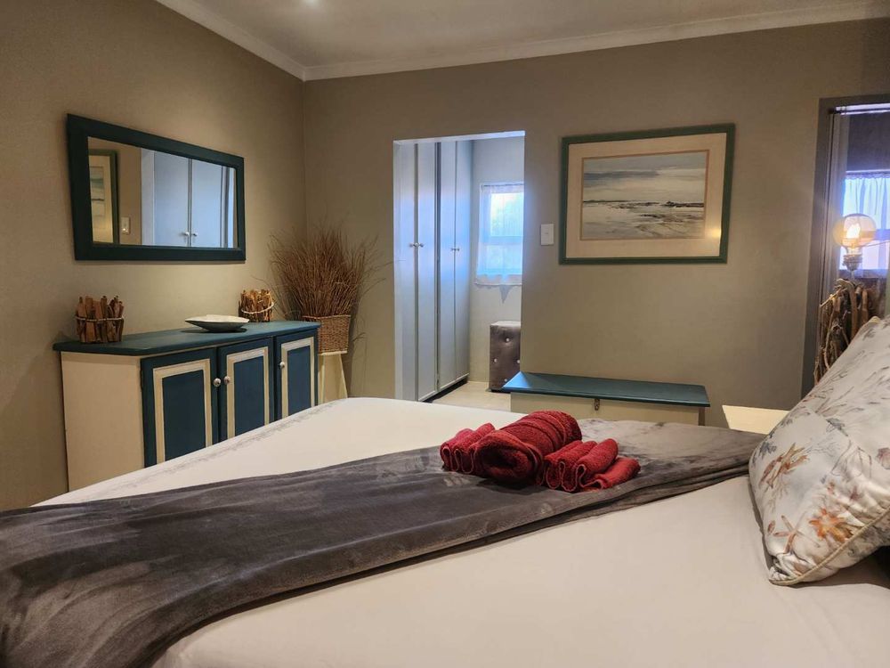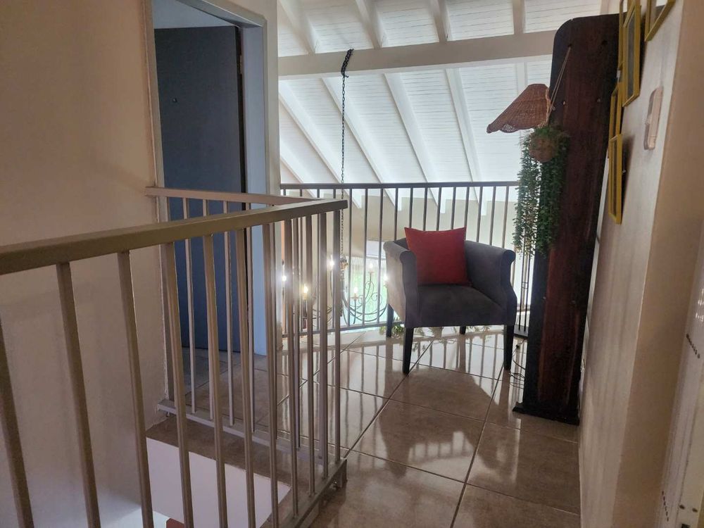 The townhouse offers a semi open-plan layout with a modern kitchen fitted with a gas stove, under-counter washing machine and tumble dryer, making daily living and guest turnover equally effortless. The living area flows into a spacious private front section with a dedicated braai and entertainment area, ideal for relaxed family living or hosting guests.