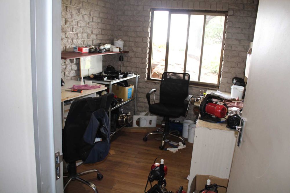 It is a plot with a lot of potential and different uses. Firstly for a lovely idyllic country lifestyle with all the benefits of a big city nearby. Furthermore, there are farming options, especially modern tunnel farming and there is also enough grazing for about 12 horses, or 12 cattle, or 50 sheep. There are two boreholes, but one is not operational. According to the previous owner of the plot the water that is obtained from the working borehole was tested and is of such good quality that it can be sold as bottled water. The property can also be used for offices or business purposes. The land can also be subdivided into smaller plots or used for residential development. Currently, the owner is using the property as offices (12 in total) and a workshop from where he runs his business.
