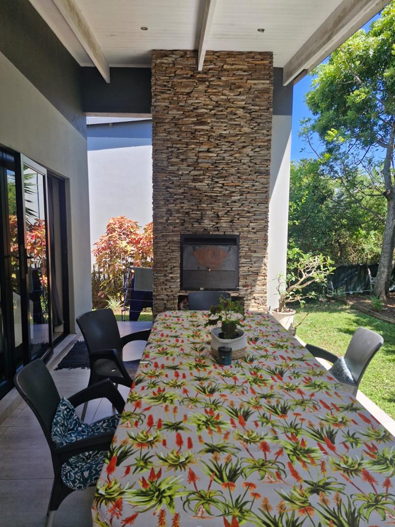 Enjoy the luxury of two elegant lounges that seamlessly extend onto a patio, complete with a built-in braai, ideal for entertaining. The fenced garden space offers a private oasis for relaxation and outdoor activities.